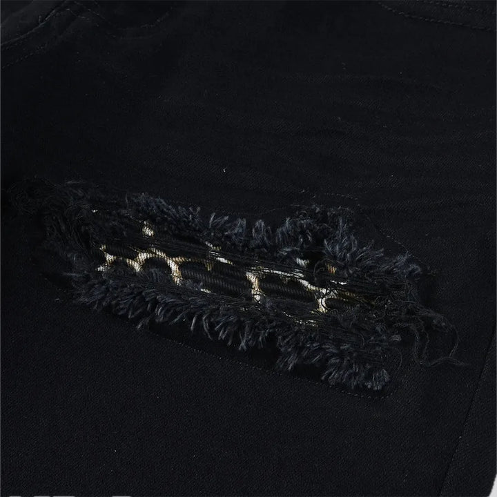 Mid Rise Biker Style Leopard Moto Men's Jeans - Black