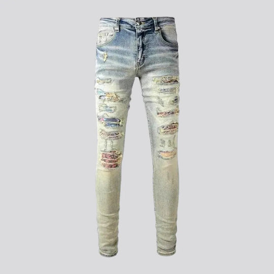 Cracked patch skinny men's jeans