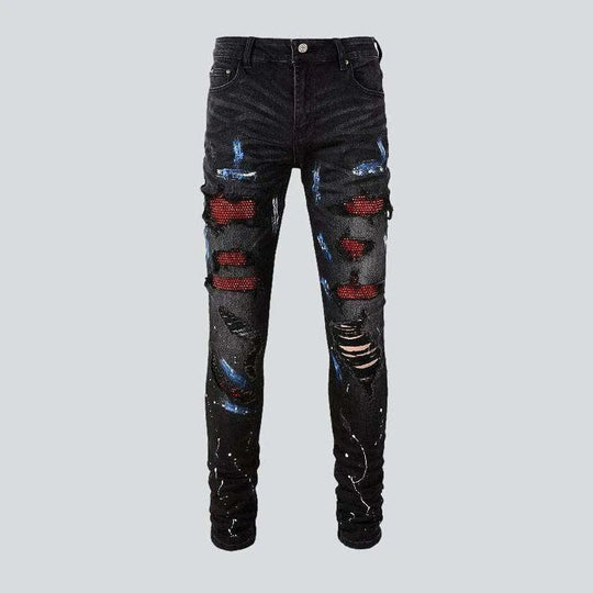 Black men's painted jeans