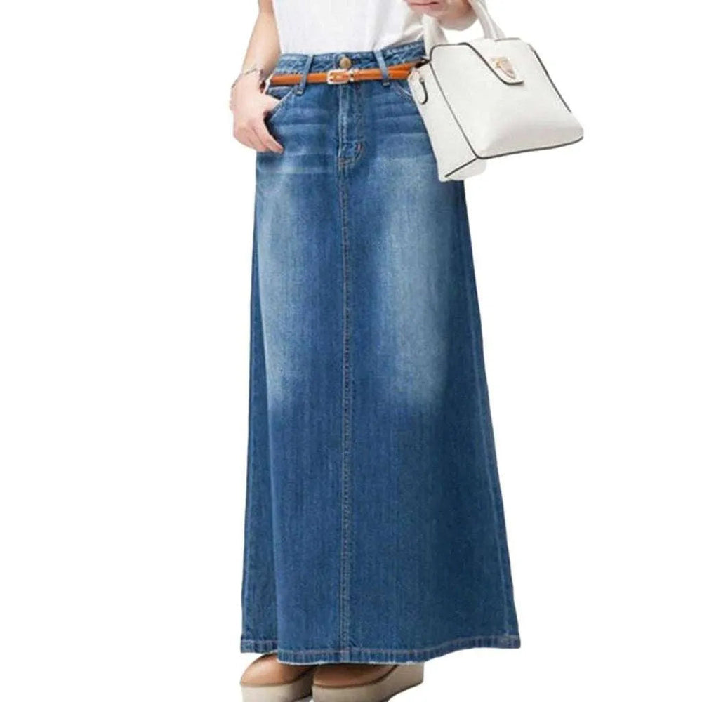 Bohemian flared maxi denim skirt
